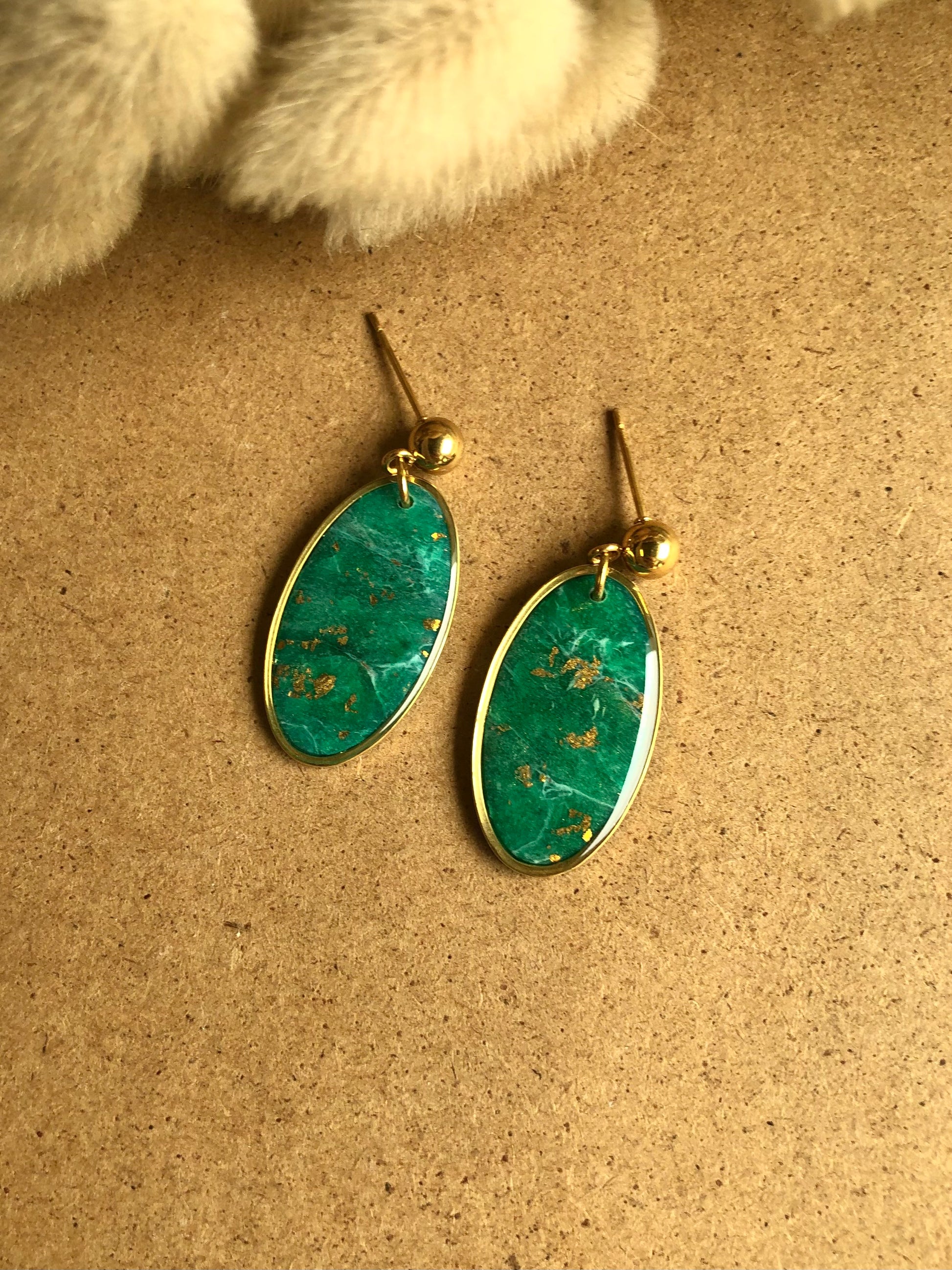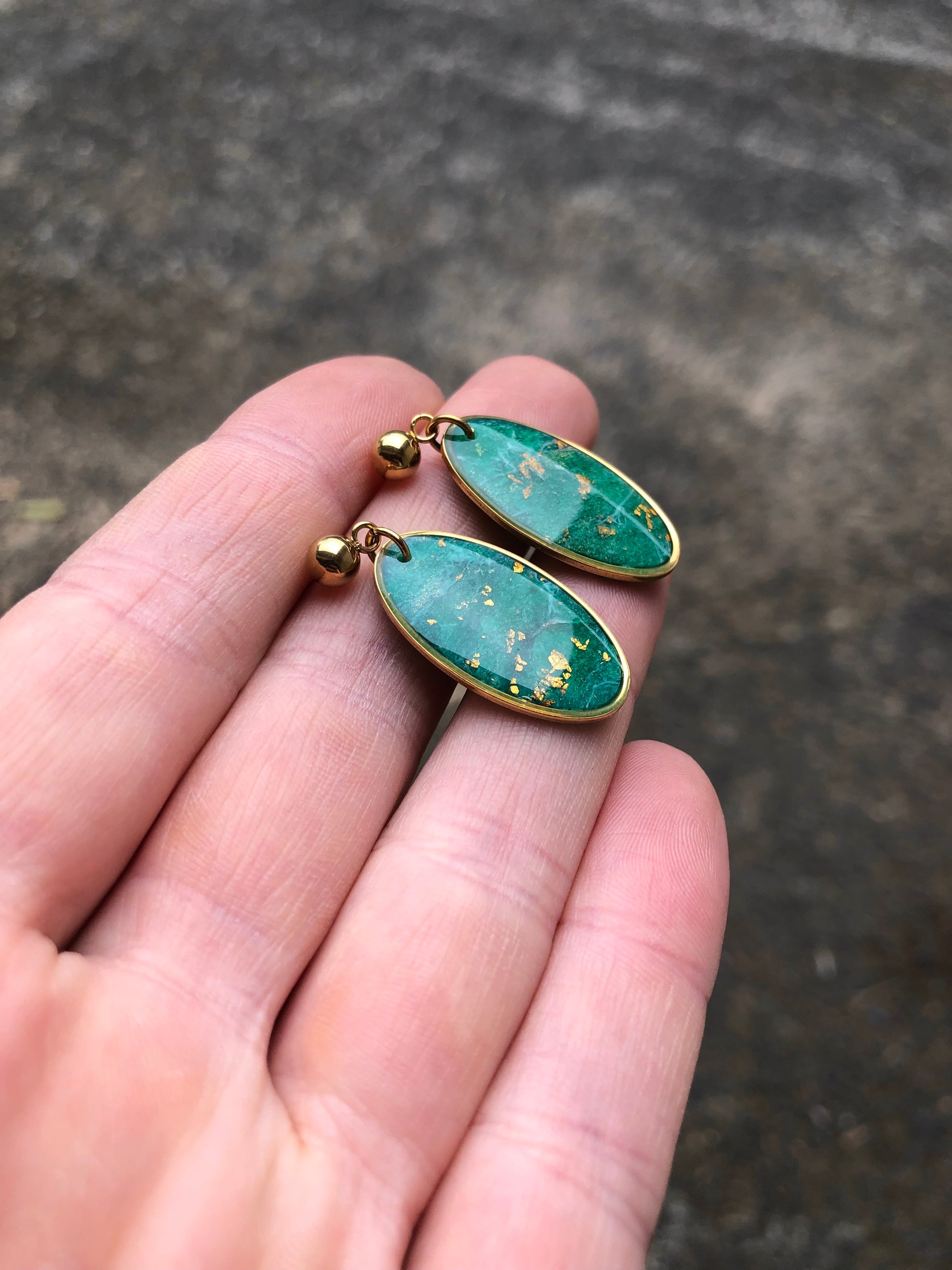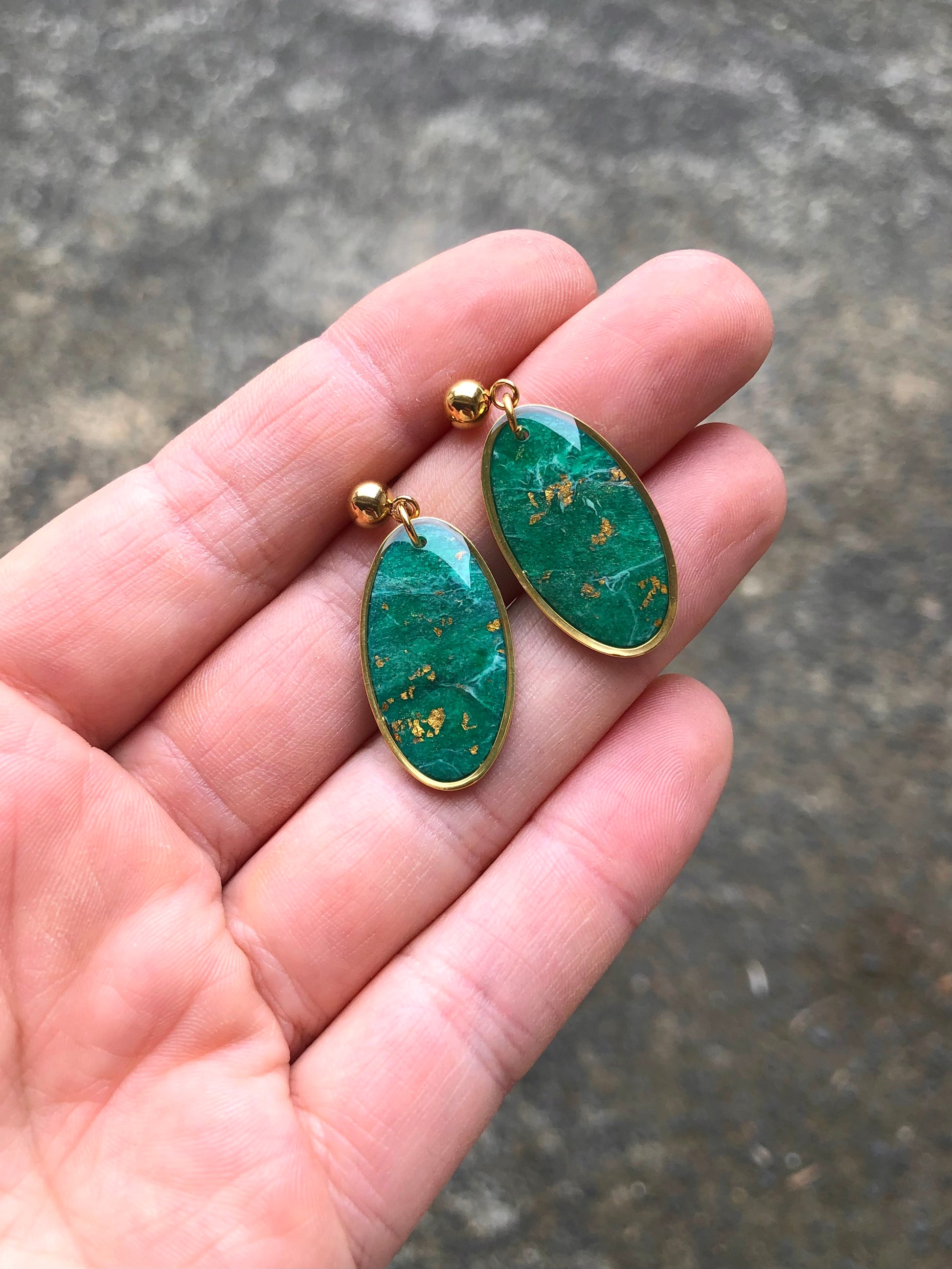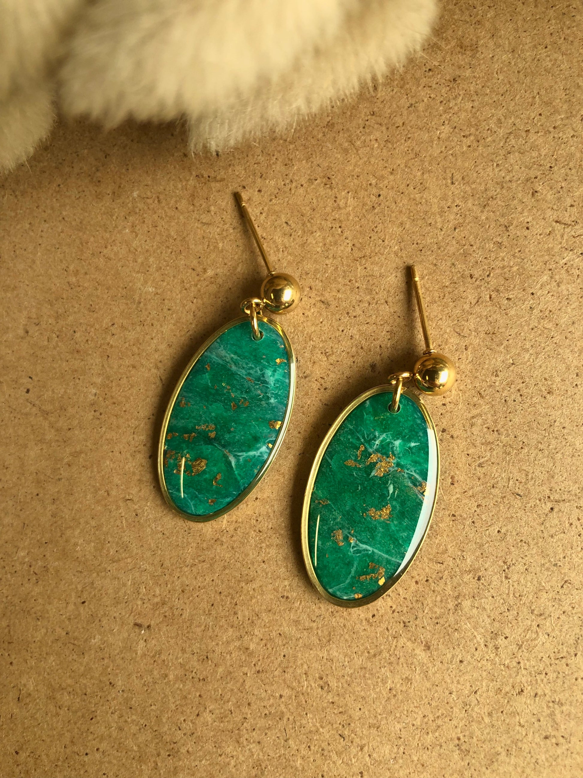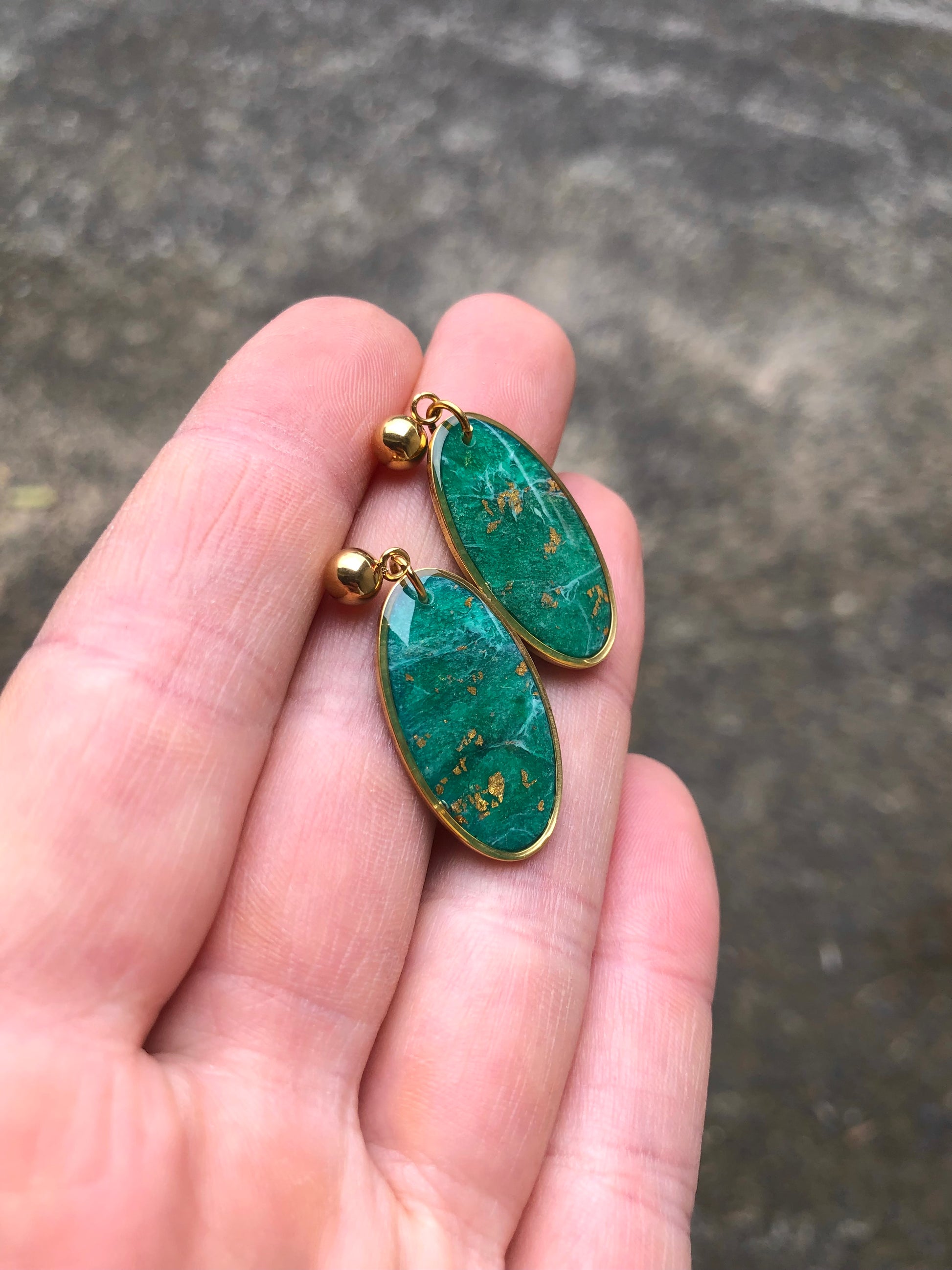 Jade stone effect, green shades made with translucent clay with some golden leaf.